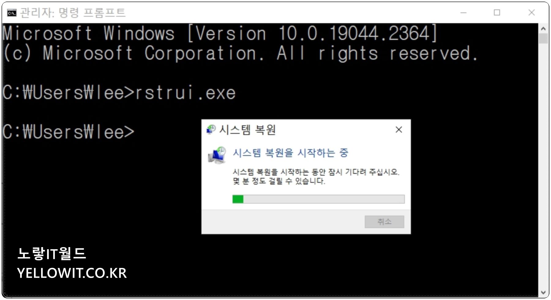 그럼 윈도우 복구가 진행되며 최신으로 컴퓨터 문제가 발생하기 전 상태로 복원을 합니다.