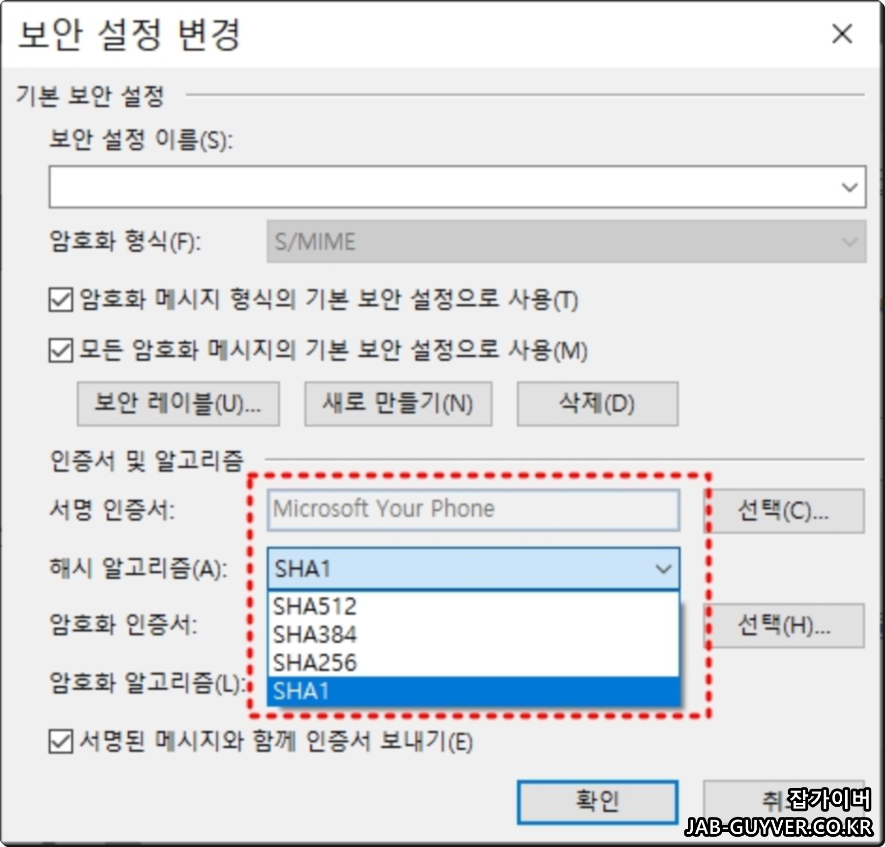 전자메일 보안에서 인증서 오류가 계속 발생한다면 암호화된 전자메일 설정을 변경해줍니다.