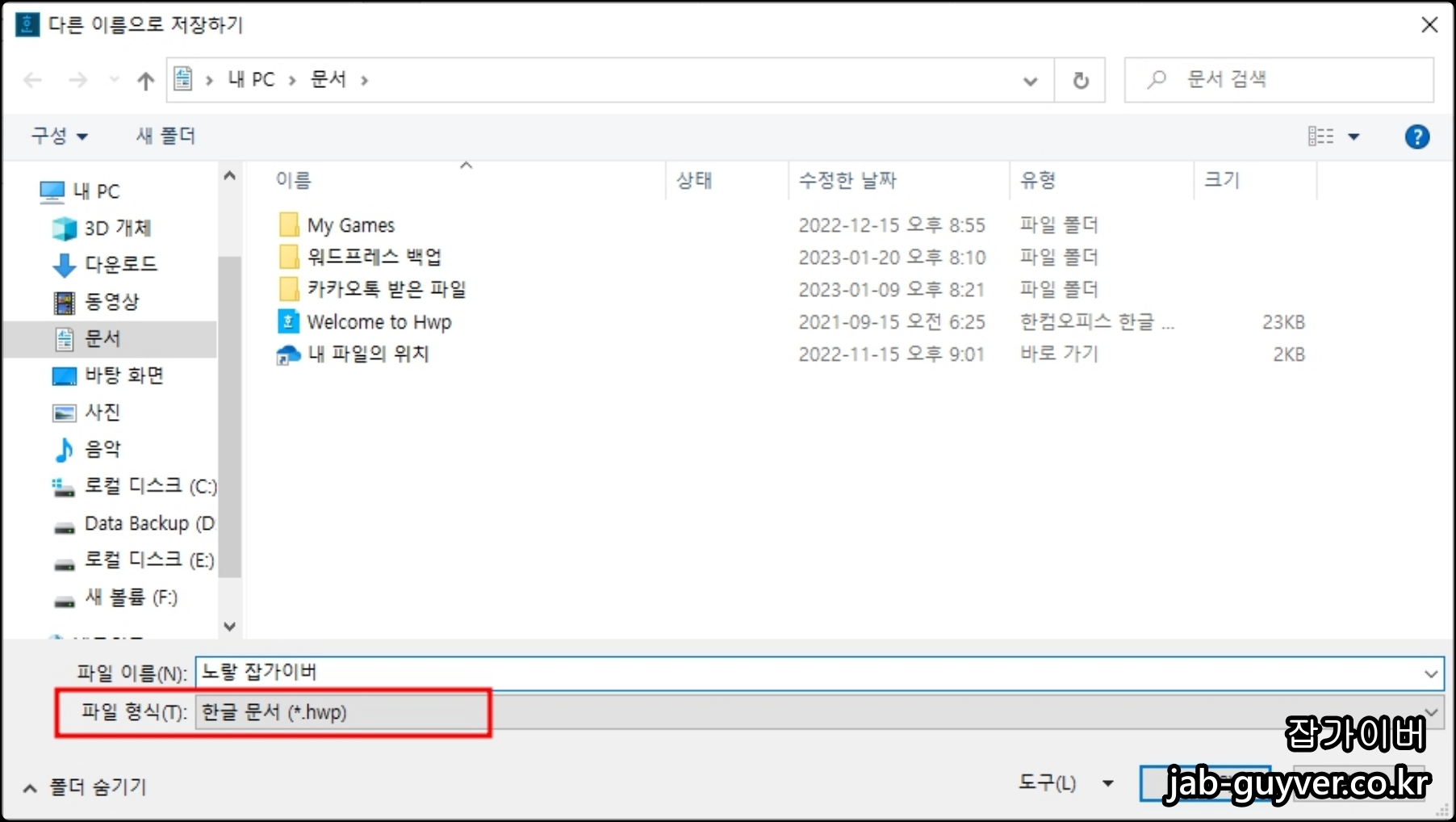 한컴오피스 한글 HWP 저장이 안될 때 저장 형식과 위치 점검