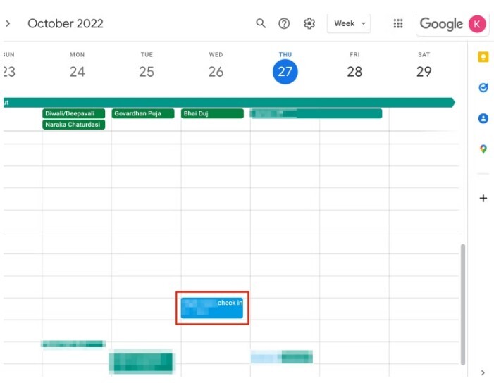 1. 웹 또는 휴대전화에서 구글 캘린더를 열고 참여하려는 회의를 선택합니다.