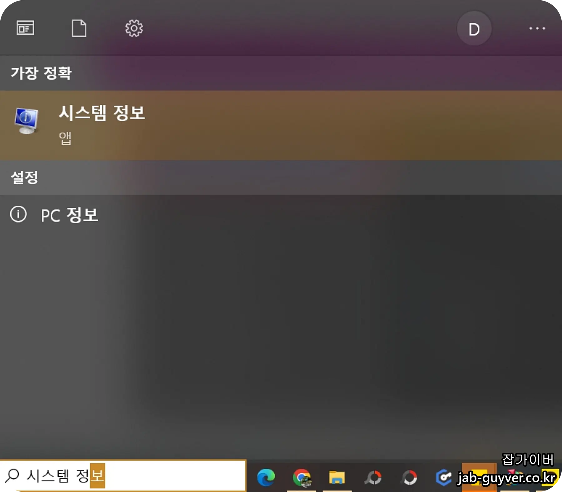 윈도우 검색창에 시스템 정보 입력 후 실행합니다.