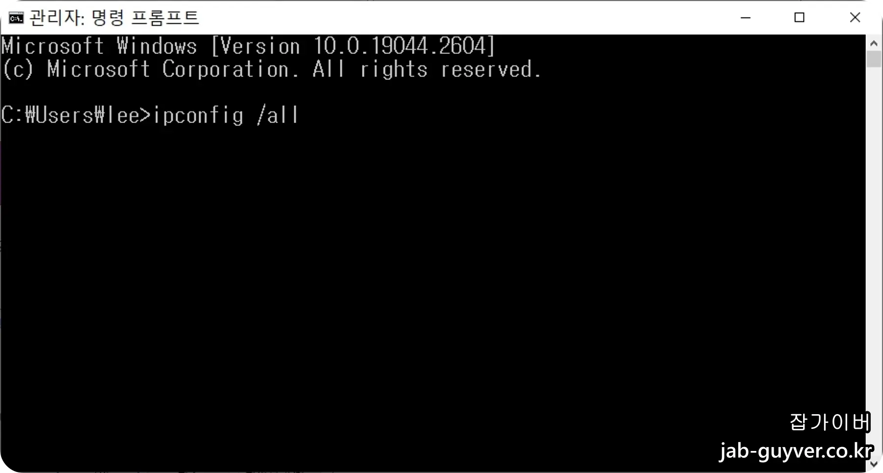가장 빠르고 표준적인 방식은 IPCONFIG입니다. 어댑터가 여러 개일 때도 실제 연결 정보를 비교하기 좋습니다.