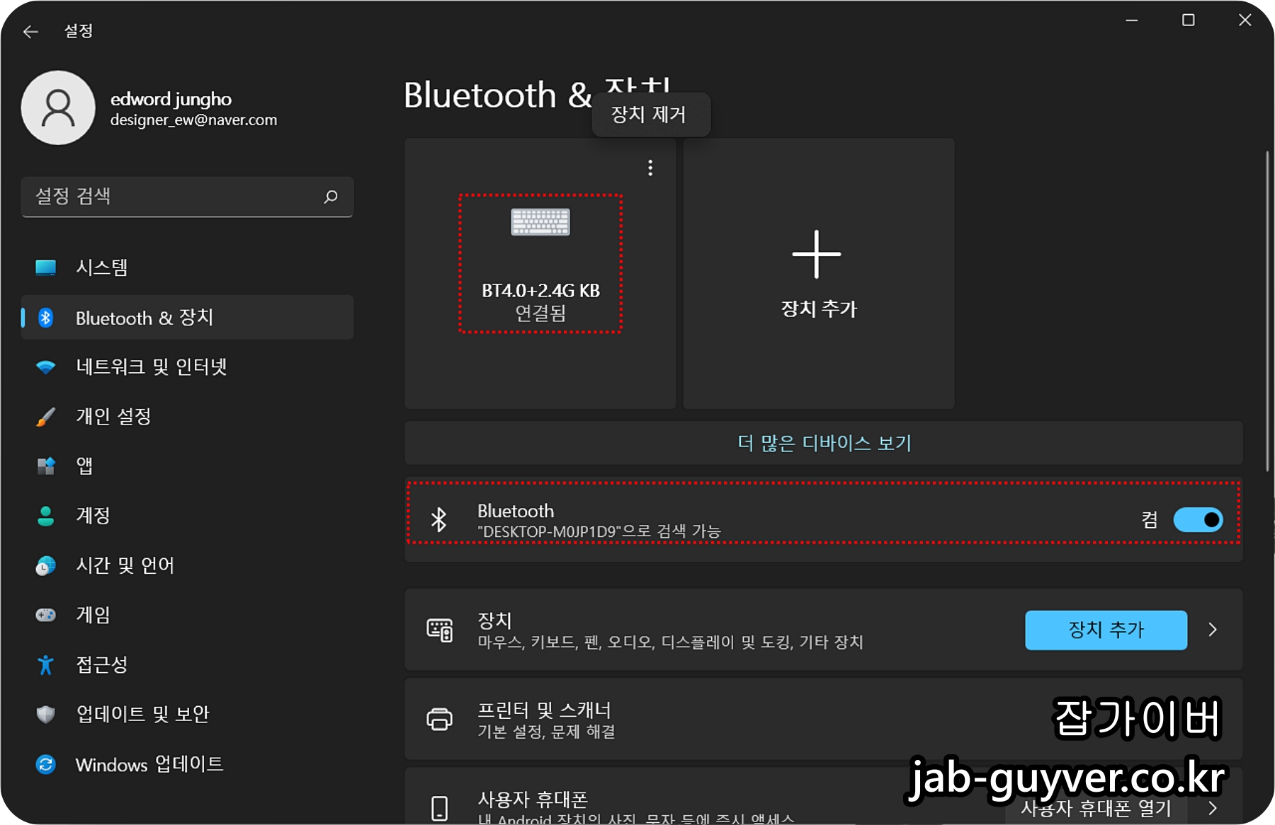 윈도우10 블루투스 키보드 마우스 인식오류 해결