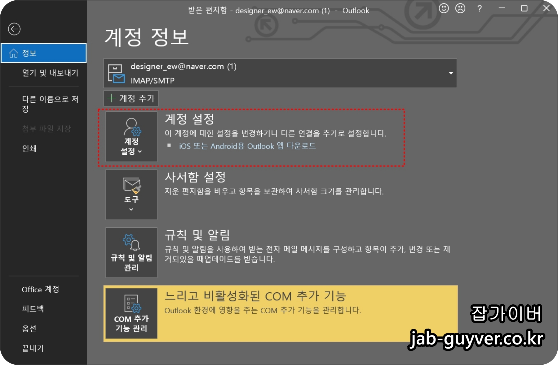 - [MS 오피스 설치/아웃룩 Outlook] - 아웃룩 구글메일 지메일 연동 설정 - OutLook