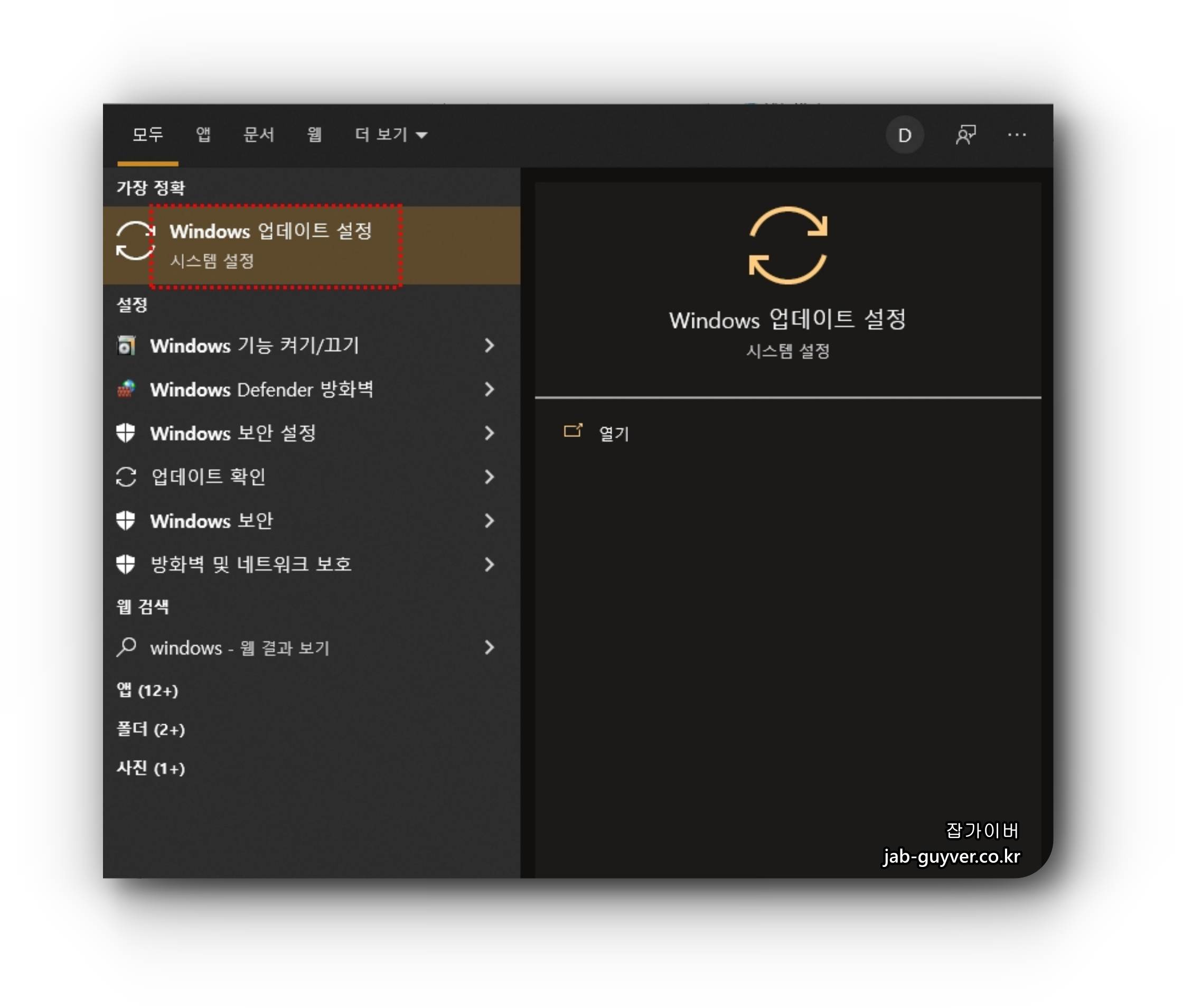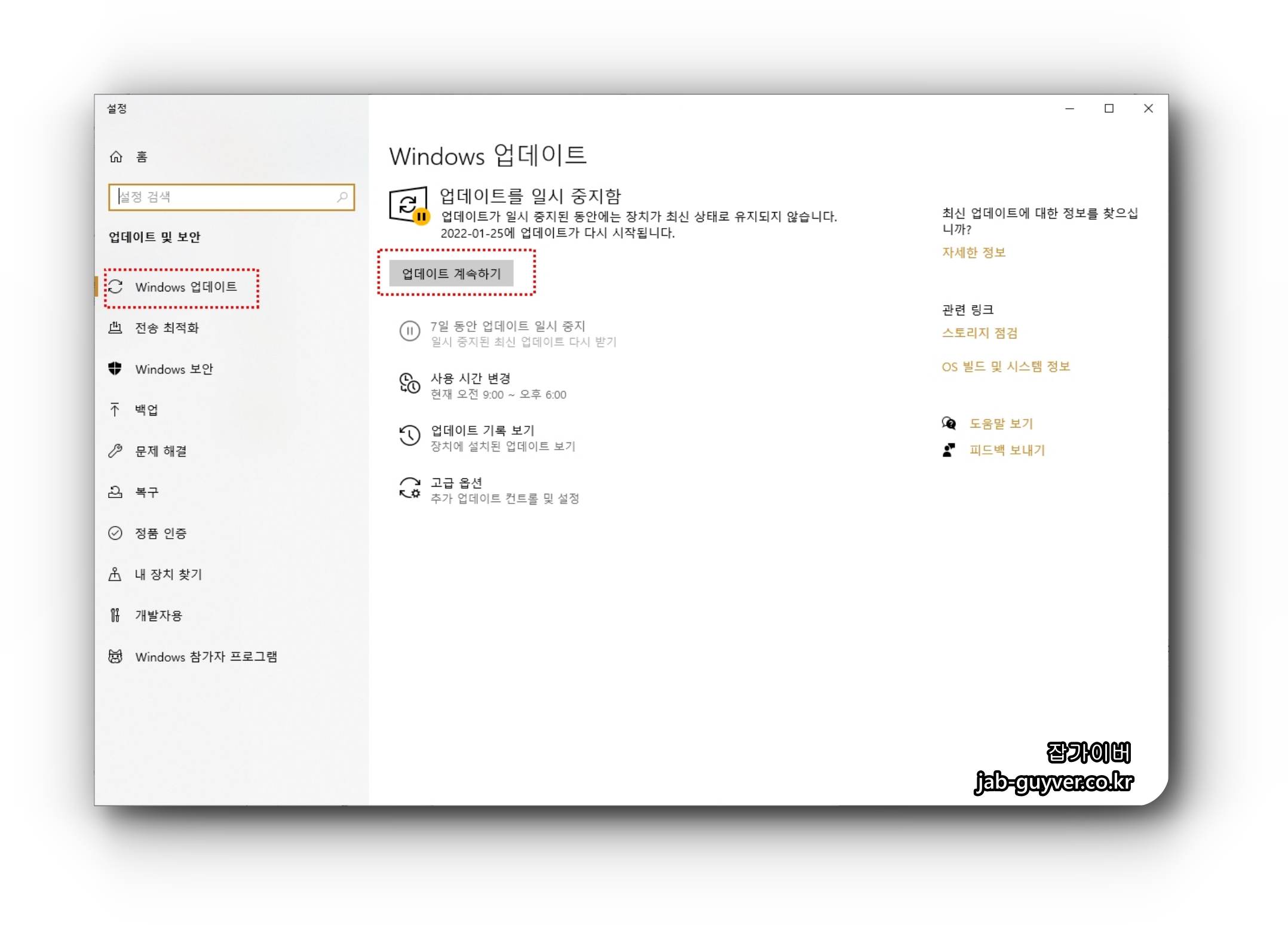 WINDOWS 업데이트 설정 -> 업데이트 항목이 있는지 확인합니다.