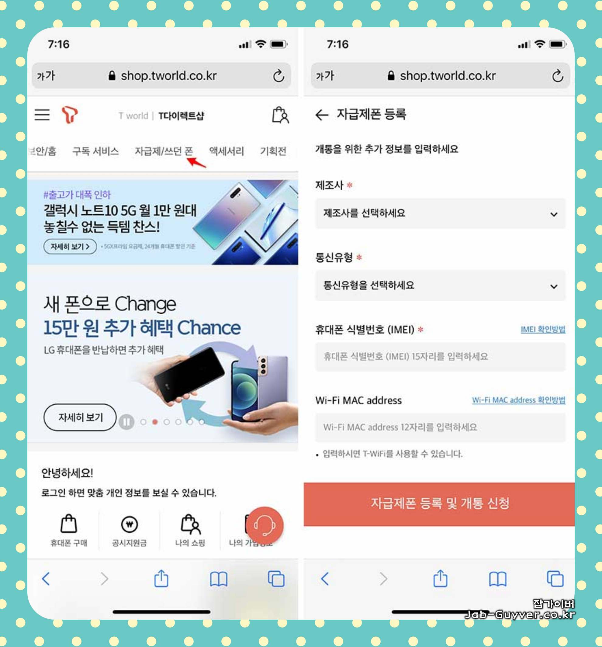 핸드폰 개통 미성년자 및 가족 및 법인 필요서류 - 자급제 개통방법 - 노랗IT월드
