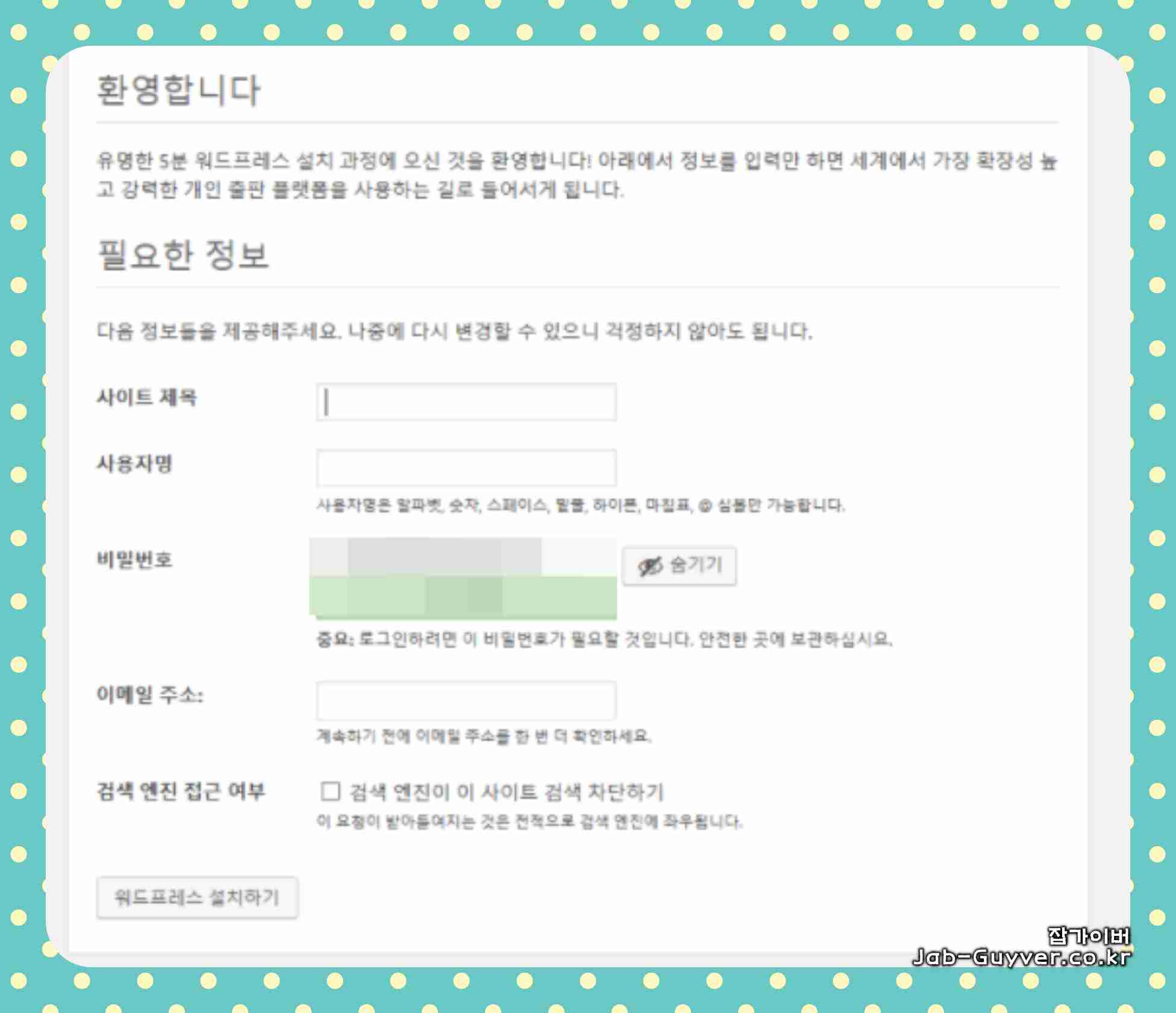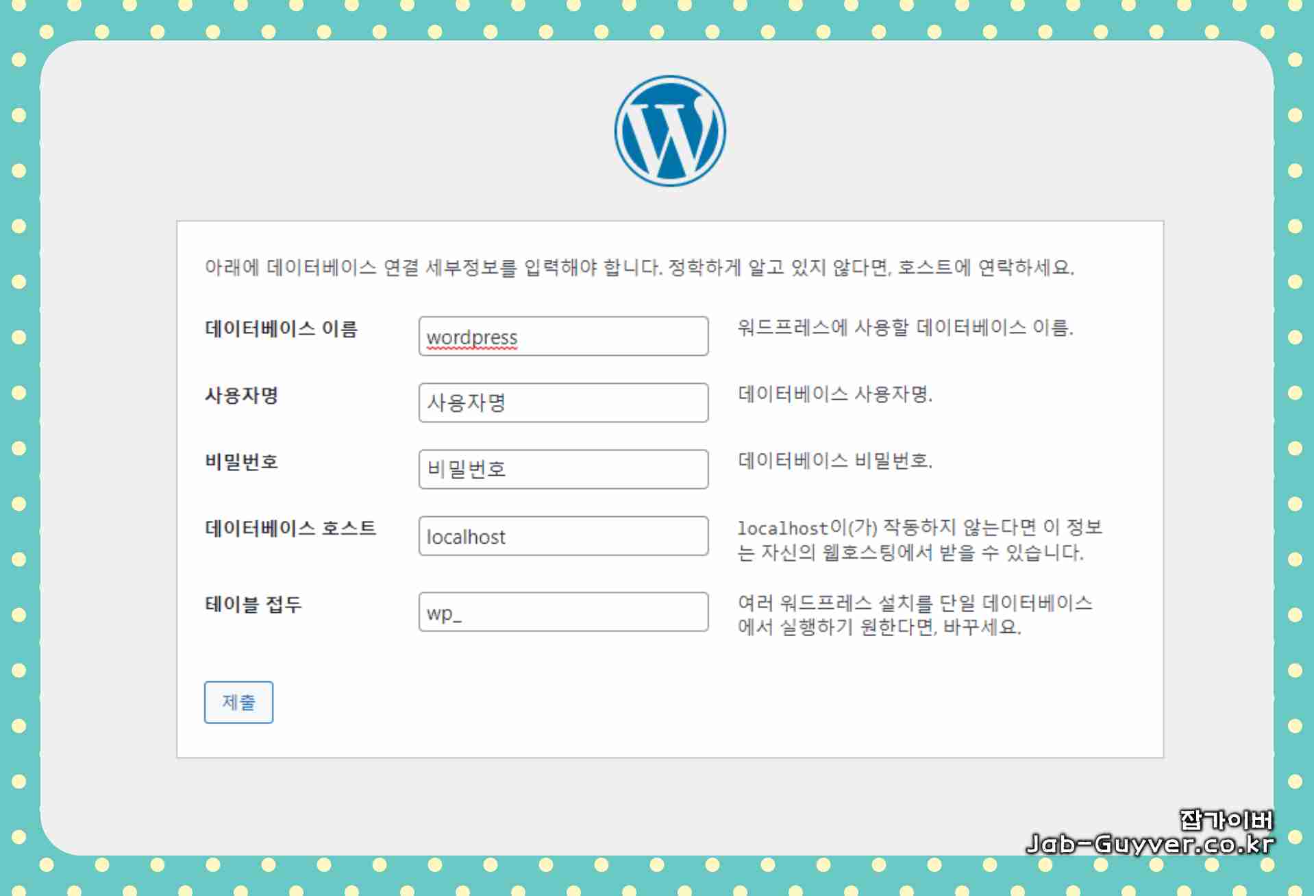 워드프레스 설치 화면은 뜨는데 DB 연결에서 멈춰요