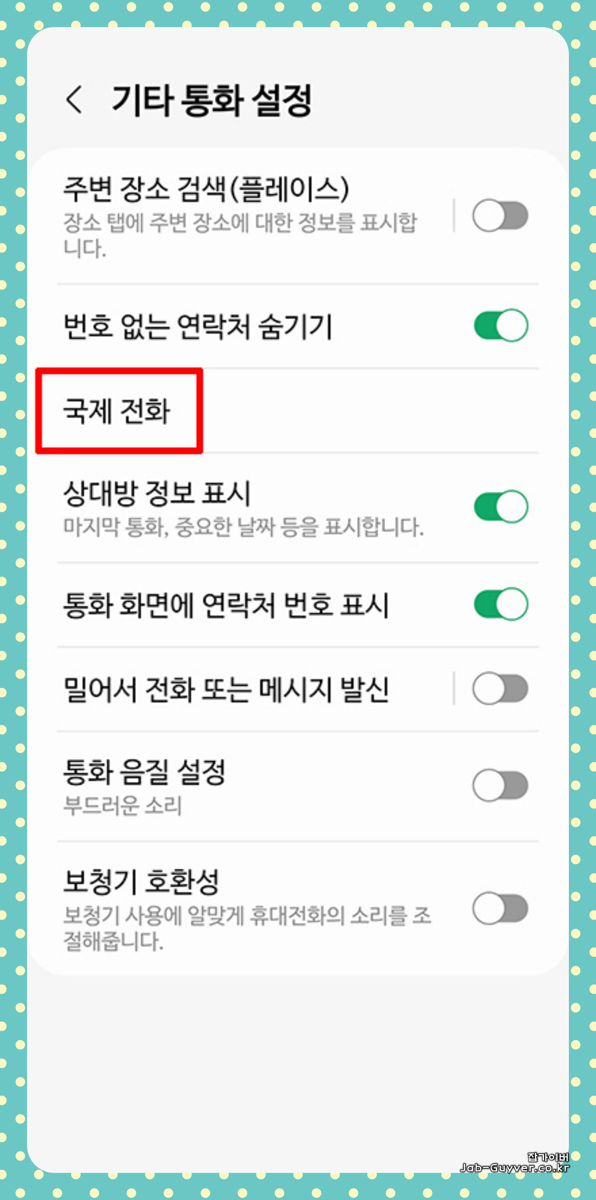 갤럭시 핸드폰 해외전화 국제전화 차단 및 스팸설정