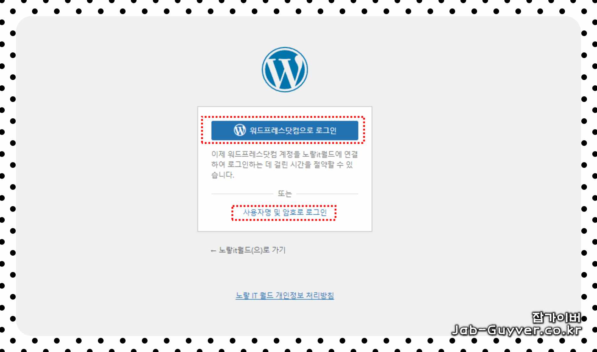 WP-ADMIN 화면 자체가 뜨지 않을 때는 관리자 화면 대신 직접 yoursite.com/wp-login.php로 접속을 시도해 보는 것도 좋습니다.