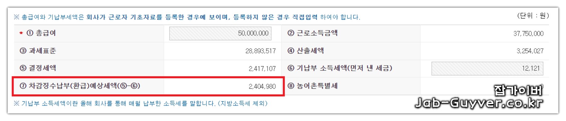 여기서 많이 헷갈리는 표시가 있는데, 마이너스 금액은 환급, 플러스 금액은 추가 납부로 이해하면 됩니다.