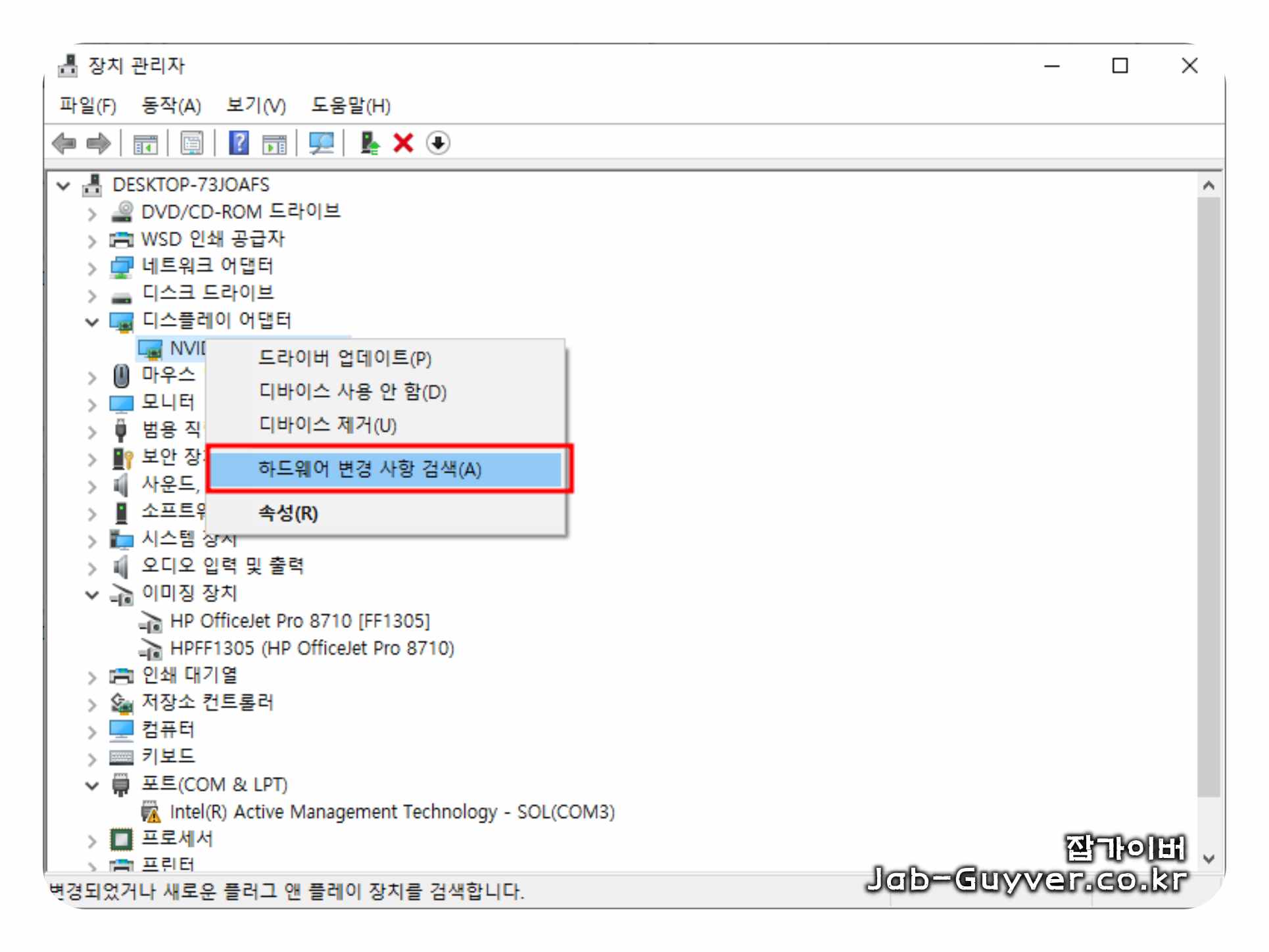 DDU 전에 ‘장치 관리자’로 현재 인식 상태부터 확인