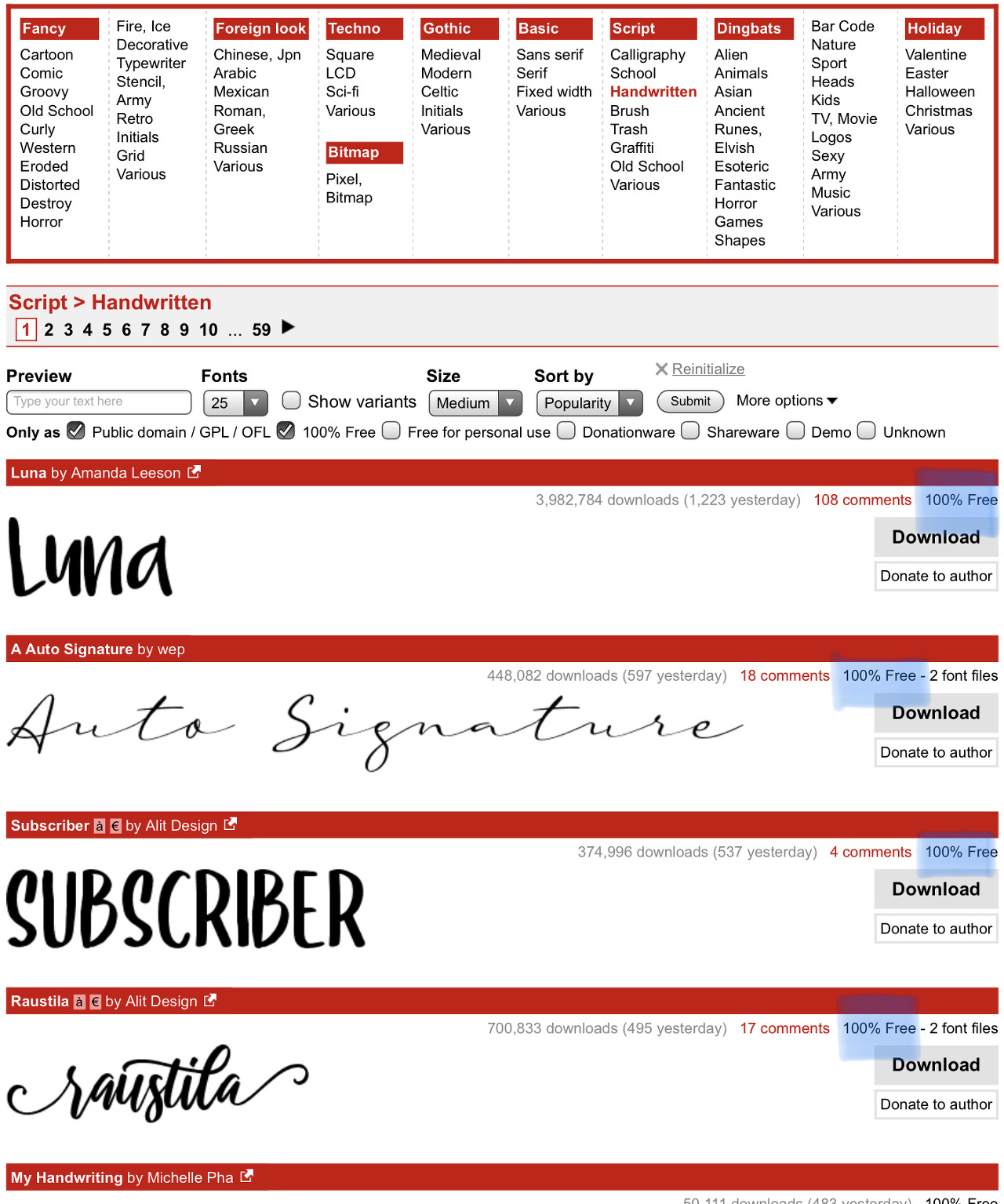 추천 제목 : 다폰트(DaFont)에서 상업적으로 쓸 수 있는 무료 영문 폰트만 고르는 법