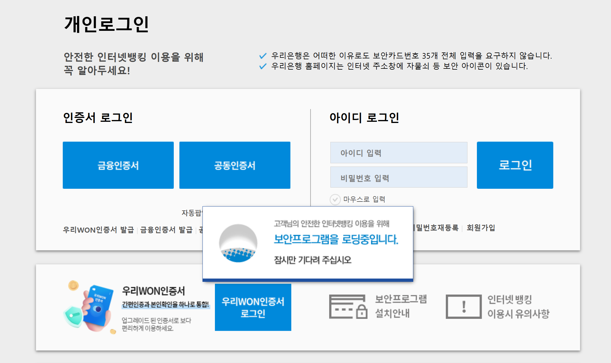 어제는 분명 설치하고 정상 로그인했는데, 오늘 다시 들어가니 또 “보안프로그램 설치”가 뜨는 경우가 있습니다. 특히 우리은행·KB·신한·IBK처럼 접속자가 많은 사이트에서 더 자주 겪죠. 이 현상은 “설치를 안 해서”가 아니라, PC 안에 이미 깔린 구성요소가 정상 인식이 안 되는 상태에서 반복되는 경우가 대부분입니다.