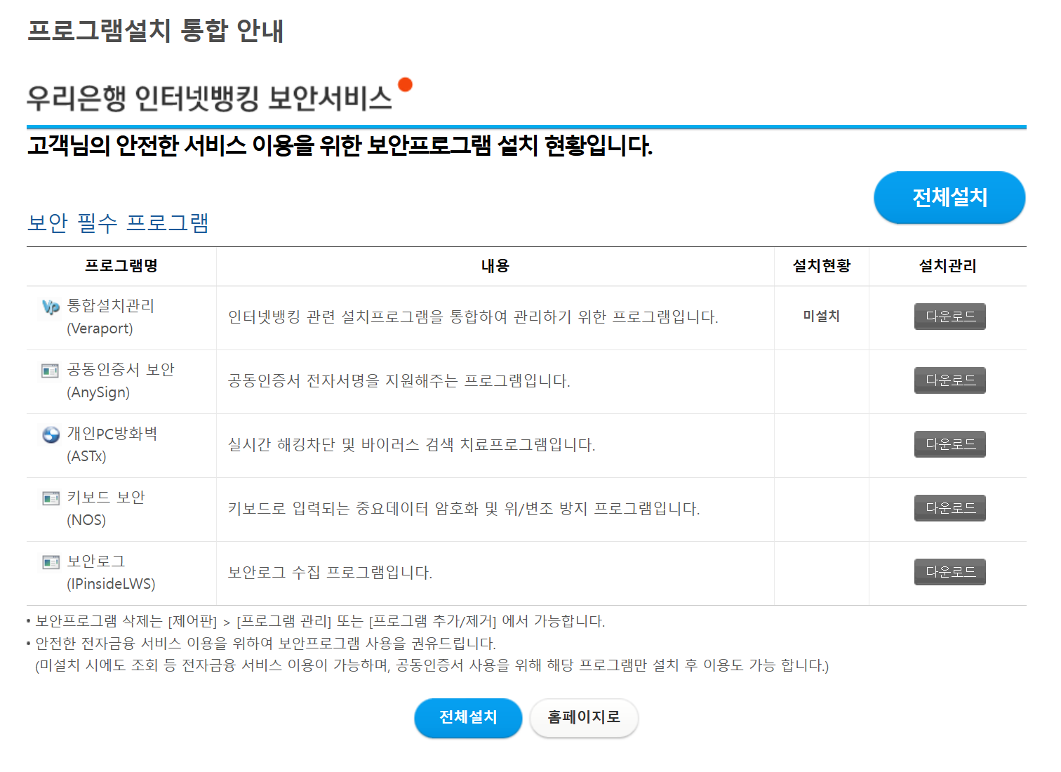 은행 보안프로그램 반복 설치 알림 해결(가장 확실한 정리 방법)