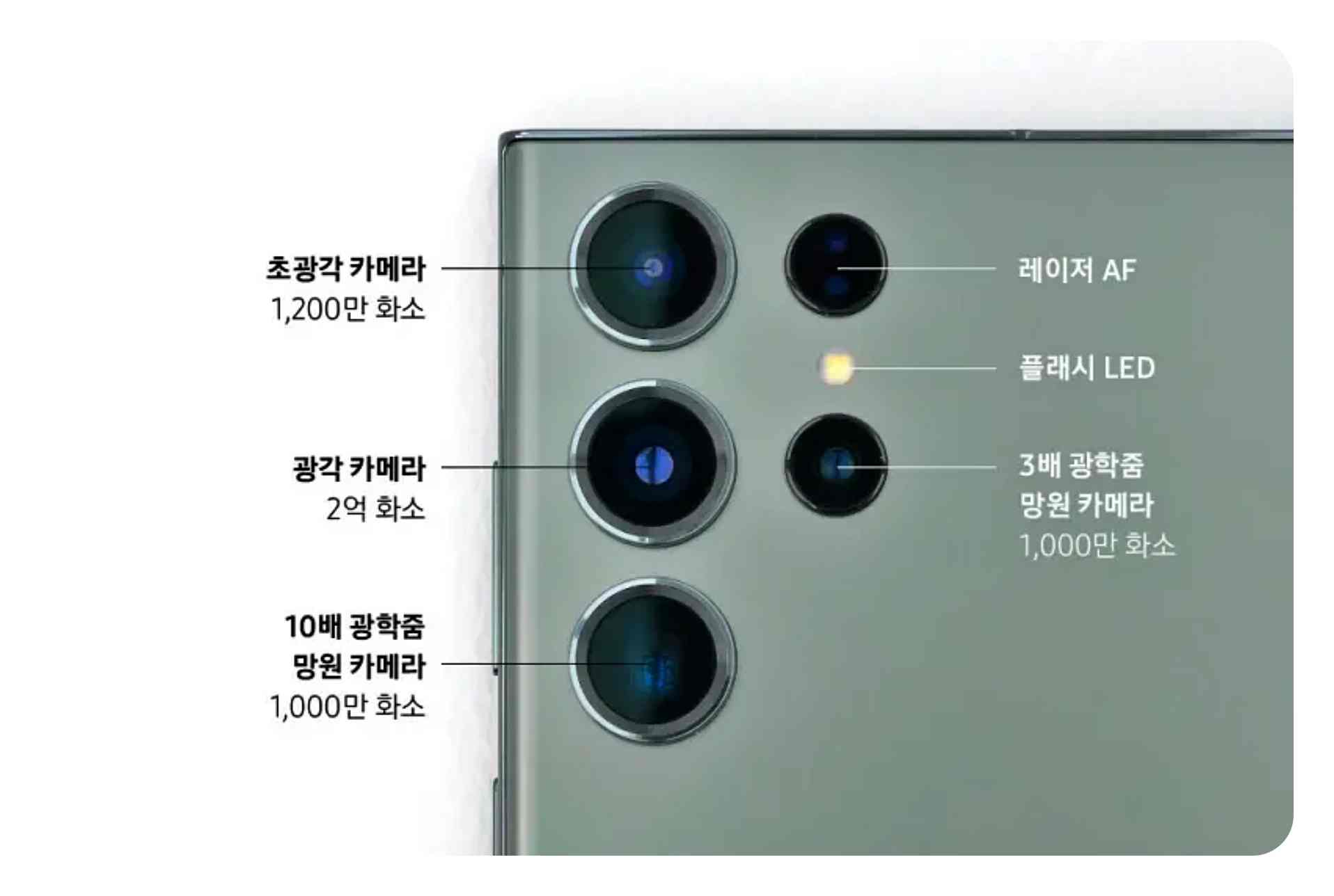 | 카메라 | 후면: 108MP 메인 카메라, 12MP 초광각 카메라, 10MP 망원 카메라, 10MP 망원 카메라, 10MP 망원 카메라 | 후면: 48MP 메인 카메라, 12MP 초광각 카메라, 12MP 망원 카메라, 12MP 망원 카메라 |