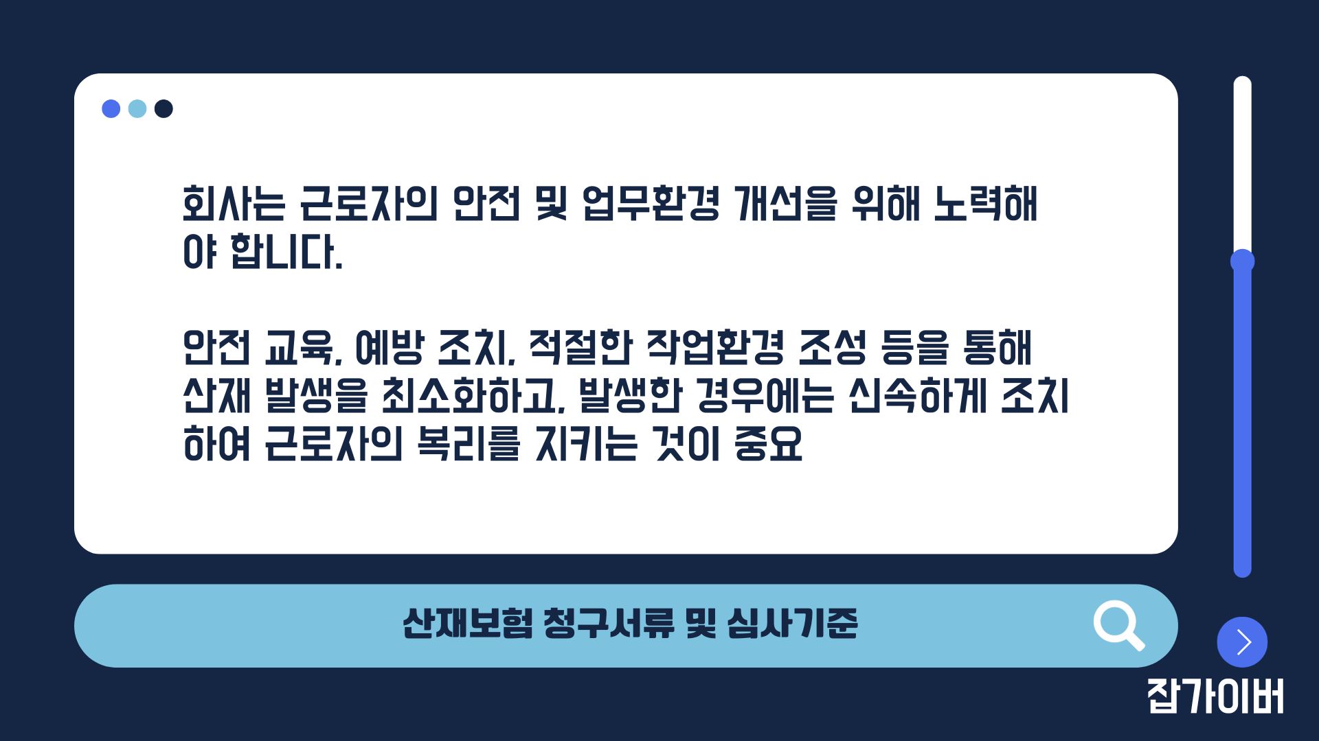 한편 회사는 산재가 한 번 발생했다고 해서 거기서 끝내는 것이 아니라, 재발 방지를 위한 안전대책을 세우고 작업환경을 개선하는 데도 책임이 있습니다. 안전 교육, 보호구 지급, 근로시간 관리, 인력 배치 조정 같은 것들이 모두 산재 예방과 연결되며, 장기적으로는 회사가 부담하는 산재보험료를 줄이는 길이기도 합니다.