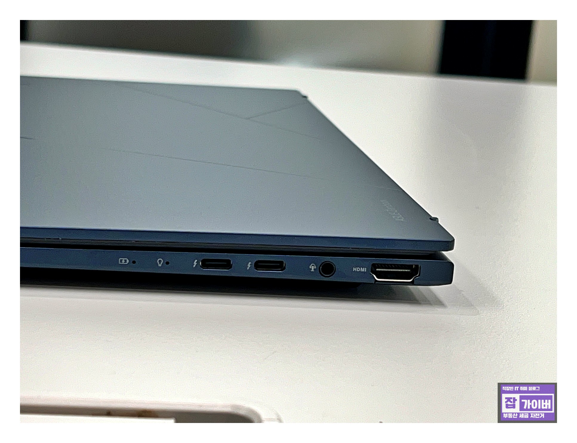 슬림한 노트북의 연결성은 항상 걱정되는 부분 중 하나입니다. 그러나 아수스 (UX3405MA) 노트북은 2 x Thunderbolt™ 4 USB-C® (최대 40 Gbps, PD 충전, DisplayPort 지원), 1 x USB 3.2 Gen 1 Type-A, 1 x 풀사이즈 HDMI® 2.1 (TMDS), 1 x 3.5mm 오디오 콤보 잭 등 다양한 연결포트를 제공하여 이 부분도 완벽히 해결했습니다.