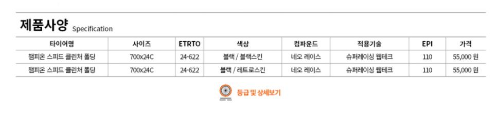 - 브랜드명, 공기압, 회전 방향 등 기타 정보