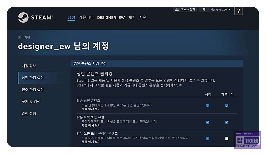 스팀 성인 콘텐츠 비활성화 - 자녀 보호 설정 가이드