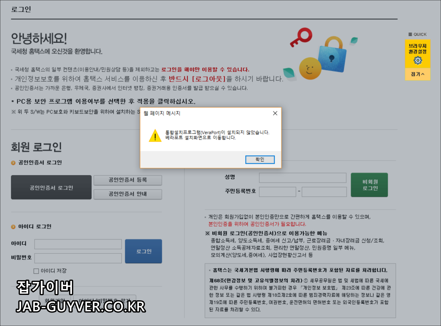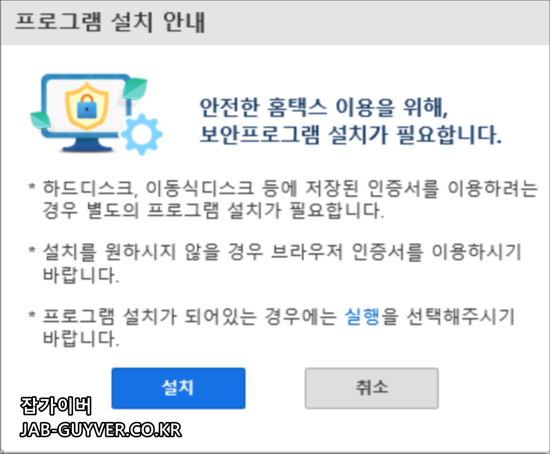 보안 프로그램 설치가 뜨면 설치 후 다시 로그인합니다.