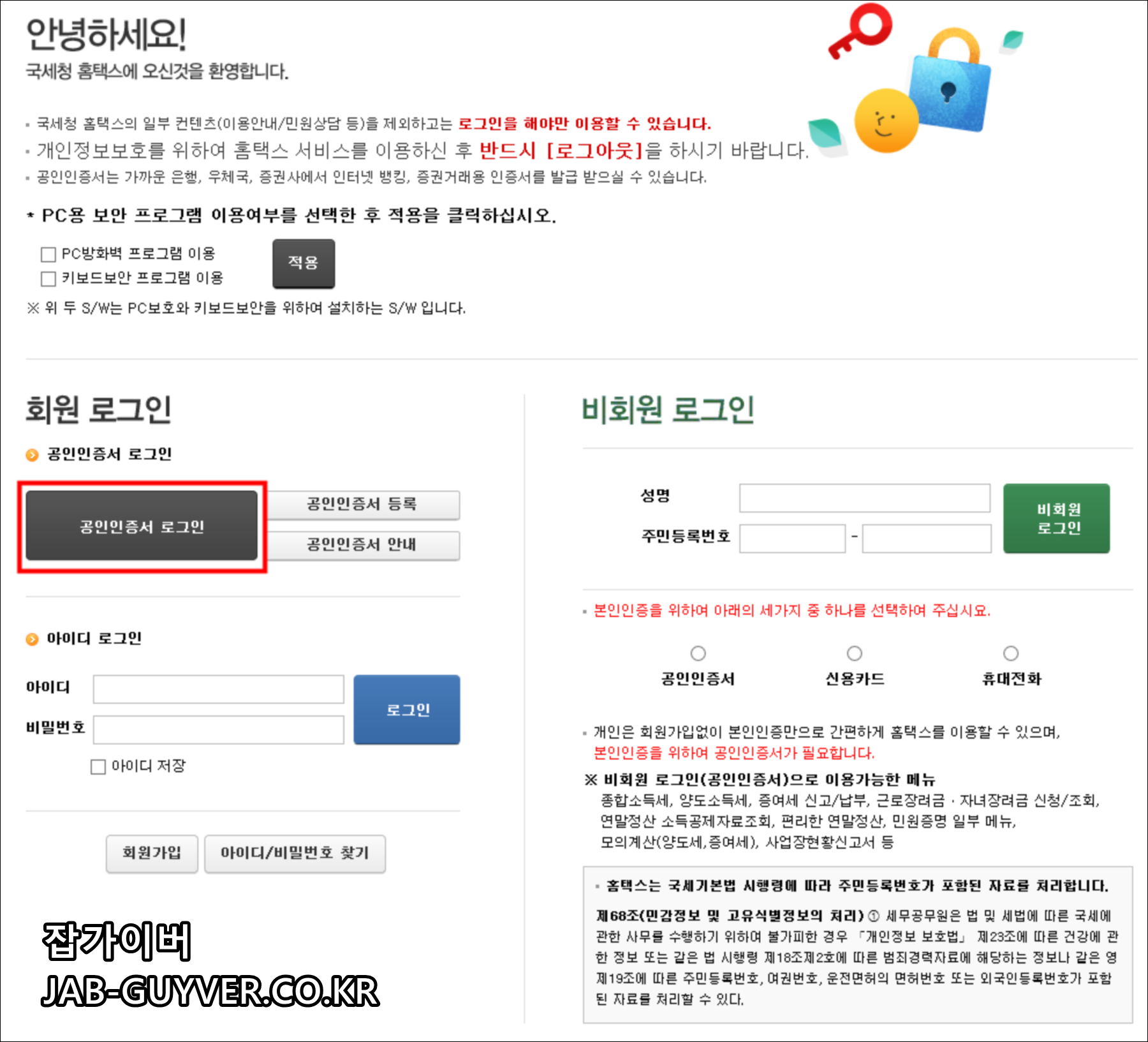 로그인은 공동인증서, 금융인증서, 간편인증 등 현재 홈택스에서 허용하는 수단으로 진행하면 됩니다.