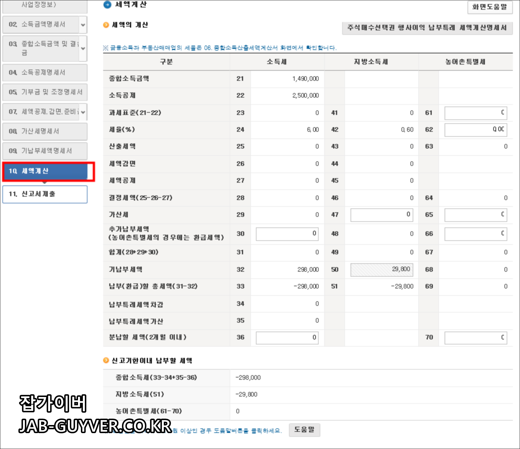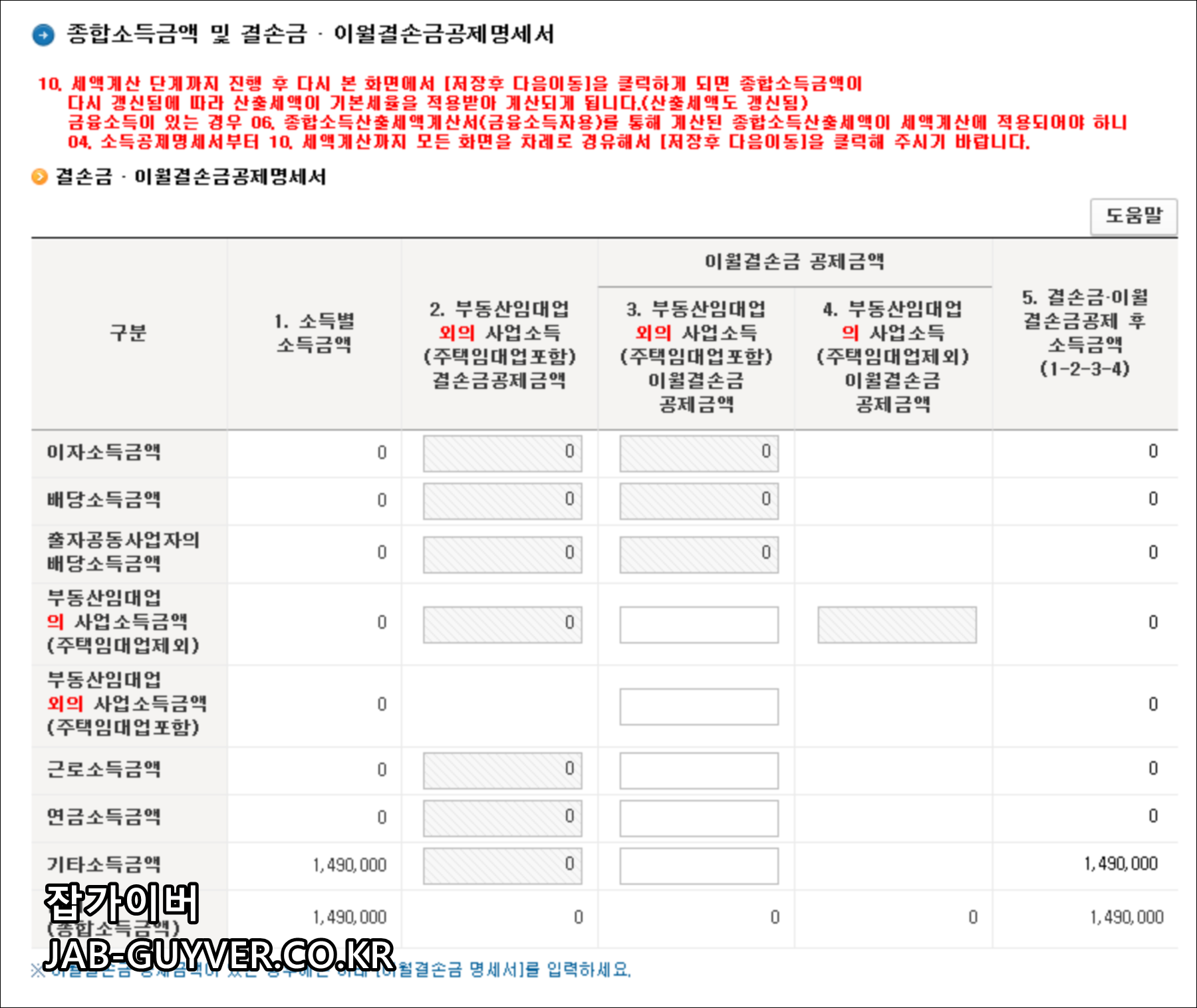 추가로 넣을 공제나 다른 소득이 없다면 다음 화면으로 넘어가면 됩니다.