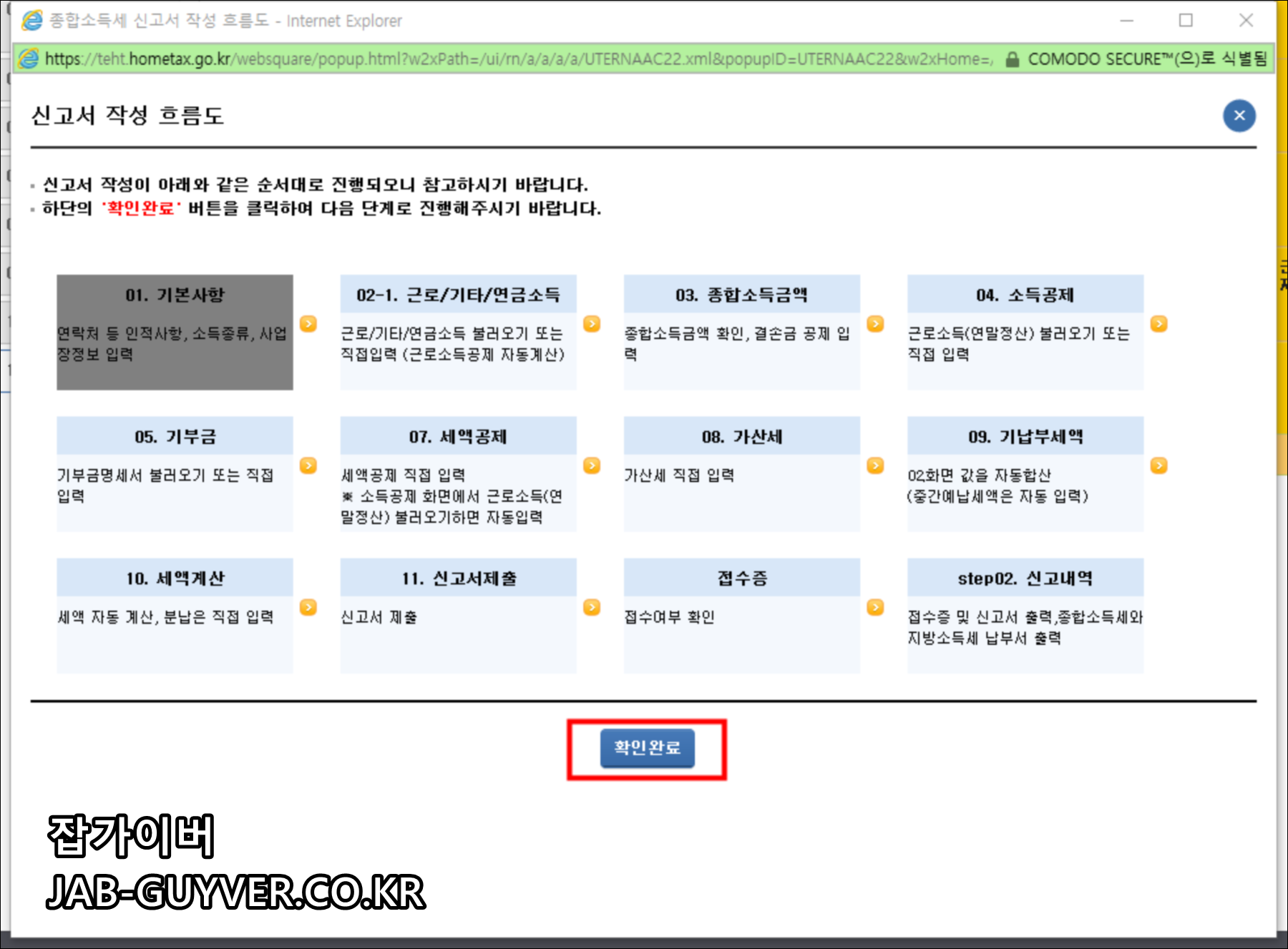 정보 확인이 끝났다면 확인완료를 눌러 다음으로 넘어갑니다.