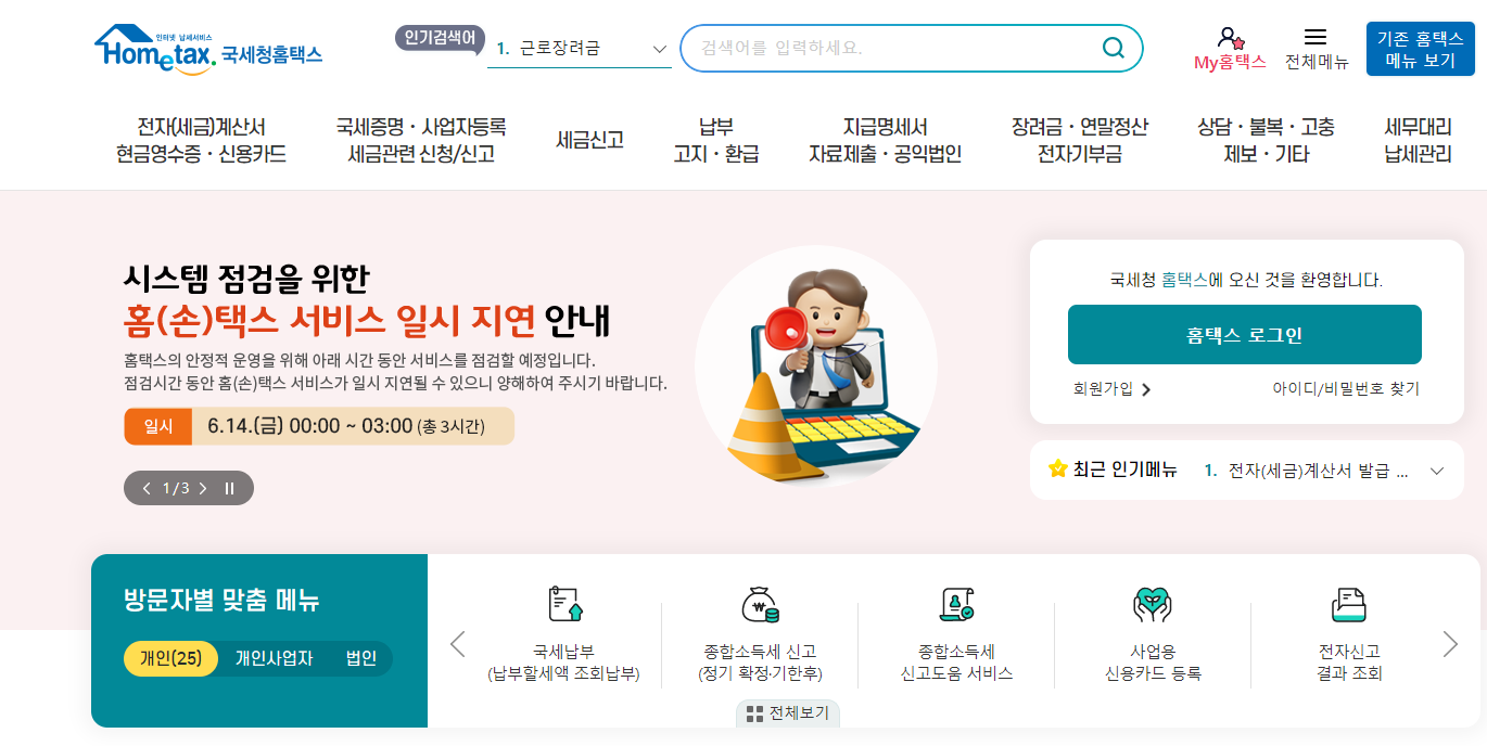 - 홈택스 접속 및 로그인