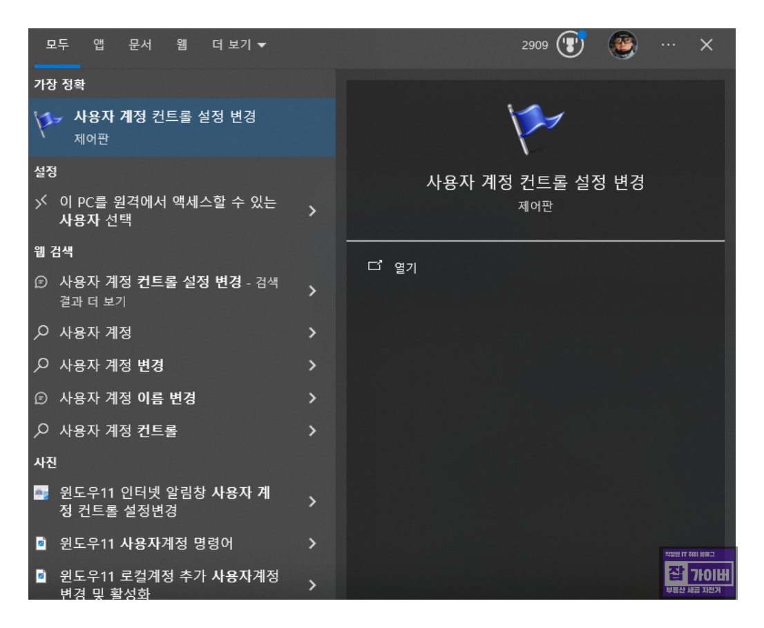 1. 사용자 계정 컨트롤 설정 변경