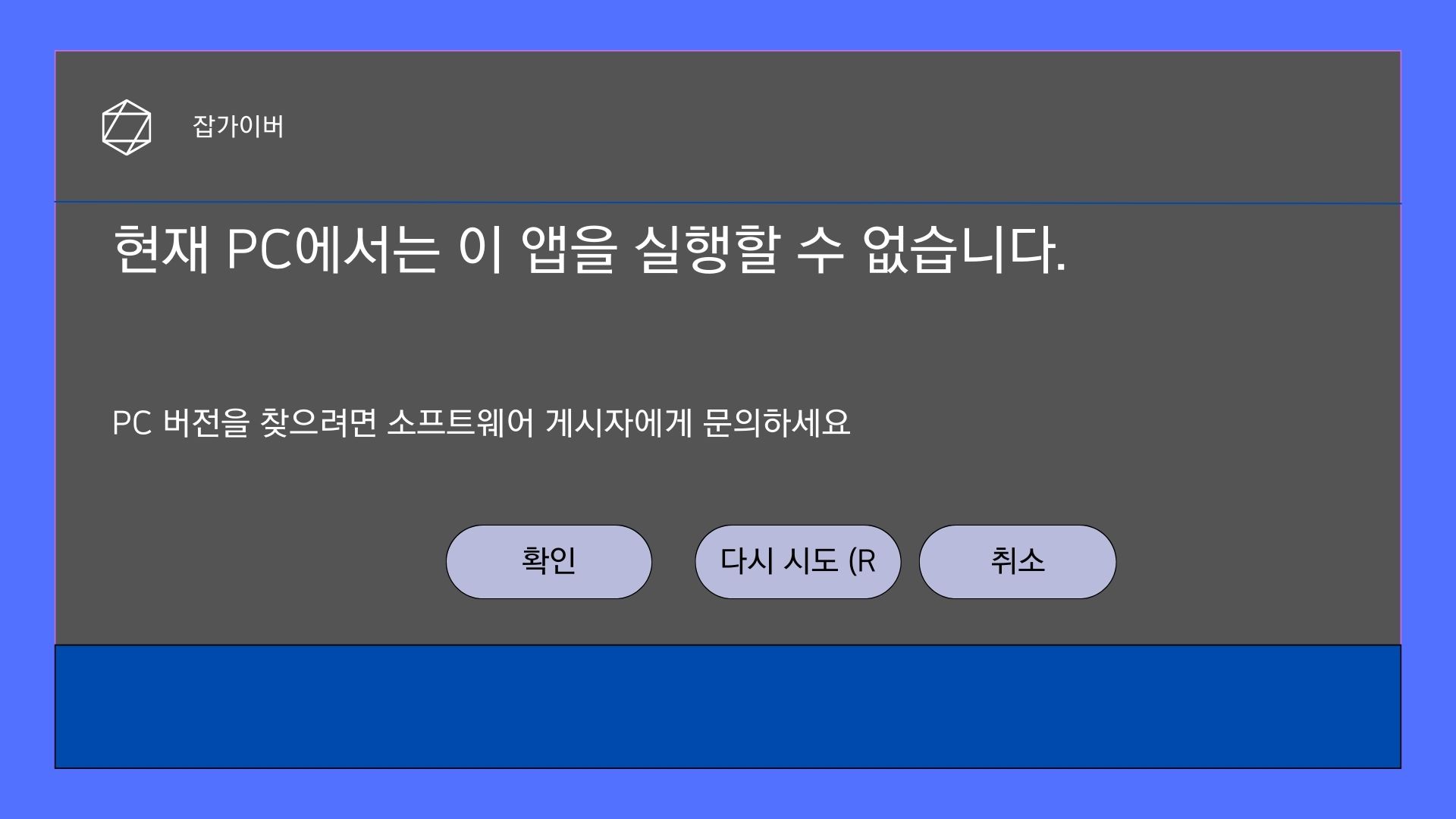 컴퓨터를 사용하다 보면 어느 순간 잘 사용하던 프로그램이 갑자기 실행되지 않고 "현재 PC에서는 이 앱을 실행할 수 없습니다"라는 오류 메시지가 나타날 수 있으며 이 문제를 해결하기 위한 몇 가지 방법을 소개합니다.