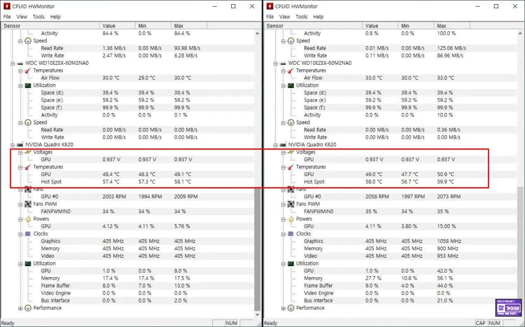 보통 가벼운 작업에서는 크게 문제 없는 온도 범위가 유지되지만, 고부하 상황에서 90도 안팎까지 오래 유지되면 성능 저하가 시작될 수 있습니다.