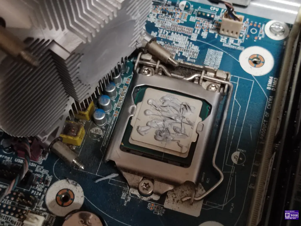 서멀구리스는 CPU와 GPU에서 발생한 열을 히트싱크 쪽으로 잘 전달해주는 역할을 합니다.