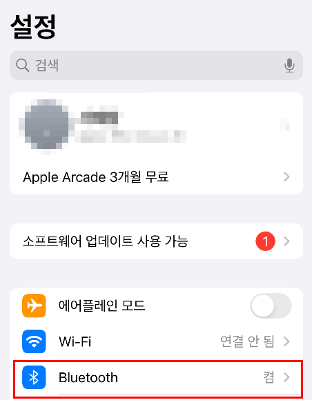 - 아이폰 설정에서 블루투스 항목으로 이동합니다.