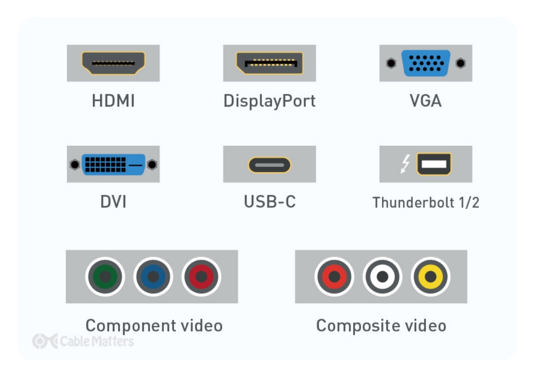 디자인 작업을 위해서는 다양한 입력 포트를 지원하는 모니터를 선택하는 것이 좋습니다. 주요 케이블 종류는 다음과 같습니다: