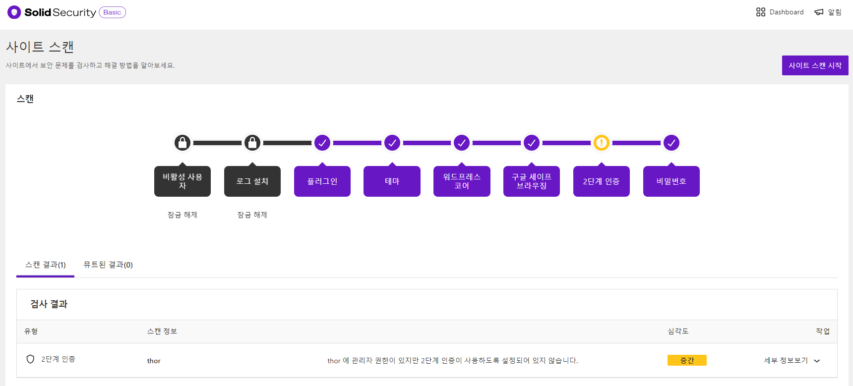 - Wordfence: Wordfence는 실시간 방화벽과 멀웨어 스캐너를 제공하여 악성코드를 탐지하고 차단할 수 있습니다. 무료 및 유료 버전이 있으며, 설치 후 '스캔' 기능을 통해 사이트를 검사할 수 있습니다.