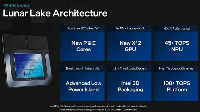 인텔은 이번 루나레이크가 메테오레이크를 뛰어넘는 성능을 제공하며, 특히 AI 연산 성능에 있어서 크게 향상되었다고 강조하고 있습니다.