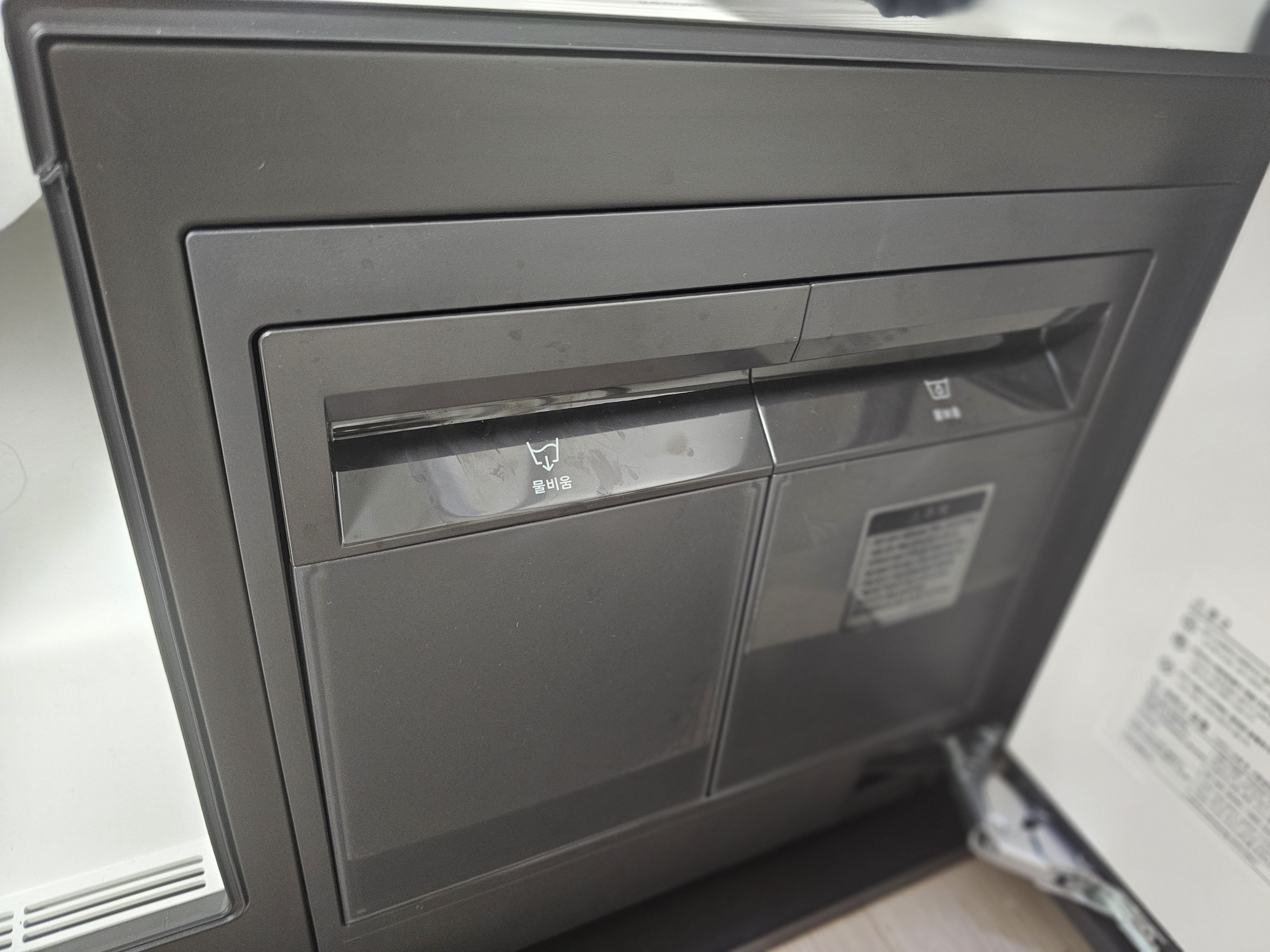 Q. 에어드레서 물통 관리는 어떻게 하나요? 물채움통과 물비움통으로 나뉘며, 사용 빈도에 따라 주 1~2회 교체 또는 세척해주면 됩니다. 물 비움통은 쉽게 탈착되고 세척도 간편해 제습 기능 활용 시에도 부담이 적습니다.