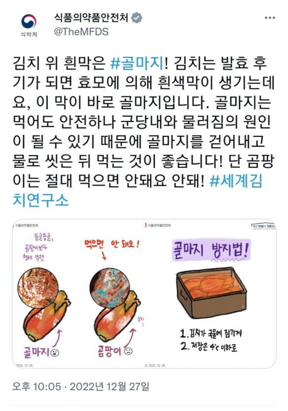김치 위에 하얀 곰팡이? 초록색 파란색 검은색 골마지 먹어도 될까?