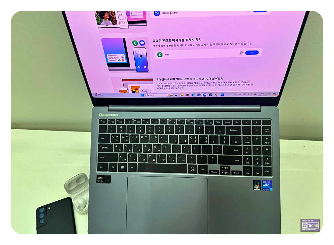 스마트폰과의 멀티컨트롤 기능으로 파일 이동이나 복사 없이 작업을 연속할 수 있고, 갤럭시 탭을 보조 모니터로 활용할 수도 있습니다. CMC 기능으로 문자·전화도 노트북에서 바로 대응 가능해, 사무 환경의 효율성이 크게 향상됩니다.