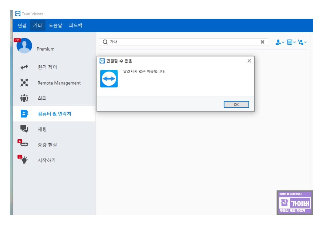 1. 팀뷰어 알려지지 않은 오류의 원인 원격 컴퓨터 수량 초과