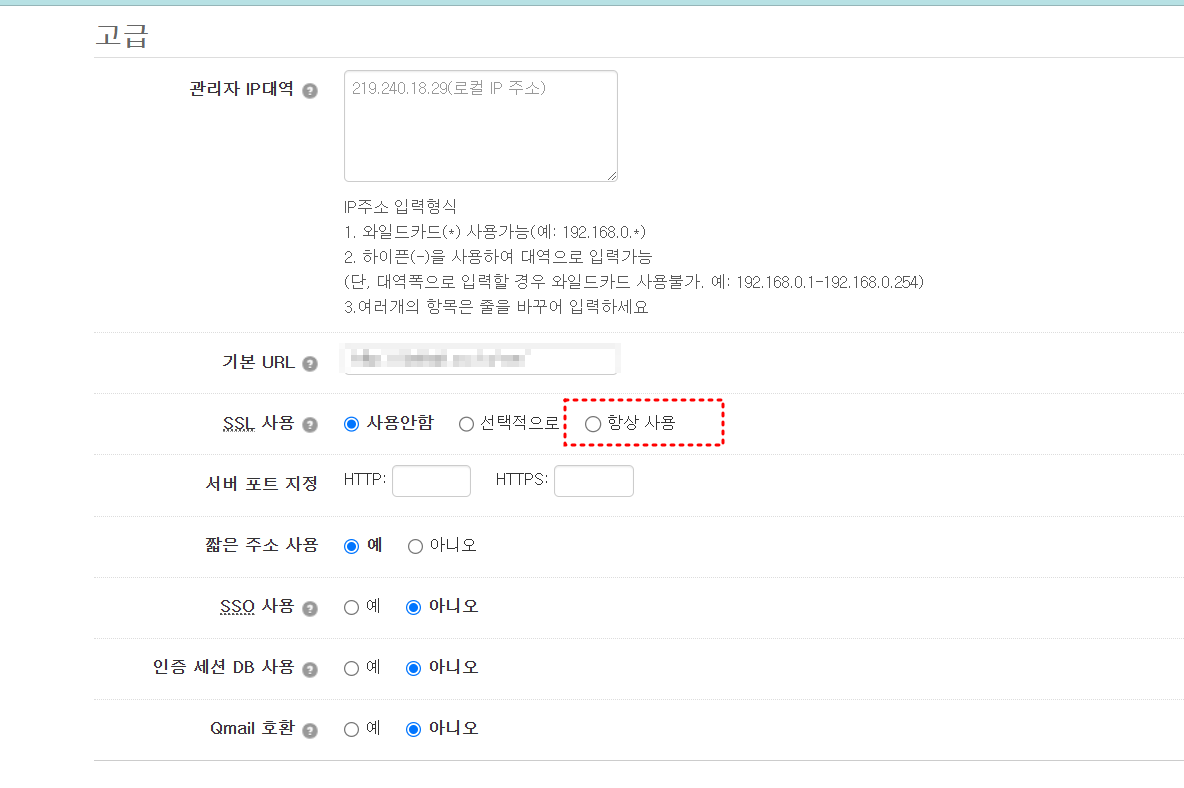 - SSL 사용 설정에서 선택적으로 또는 항상 사용 옵션을 선택합니다.