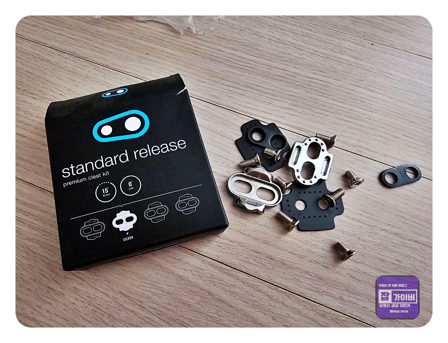 금색 클릿은 6도, 은색 클릿은 0도로 구성되어 있어 자신의 라이딩 스타일에 맞는 각도를 선택할 수 있도록 되어 있습니다. 특히 발목의 유동성을 줄이려는 저로서는 은색의 0도 클릿이 더 적합하다고 판단하여 선택하게 되었습니다.