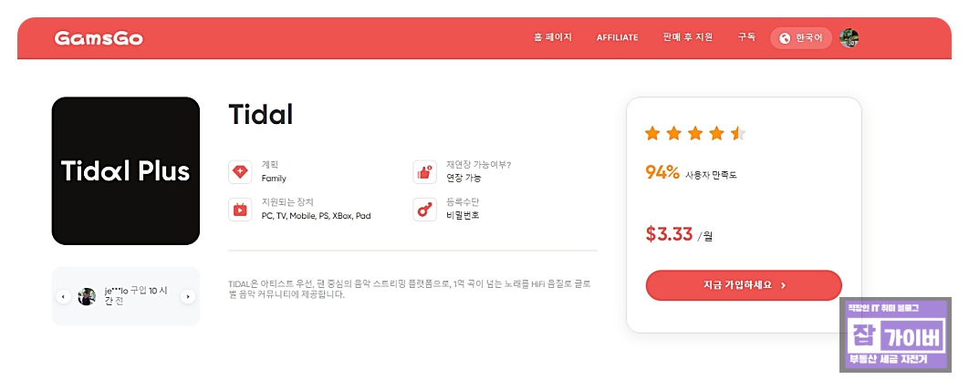 타이달(TIDAL)은 겜스고를 통해 구독해도 정품인가요?