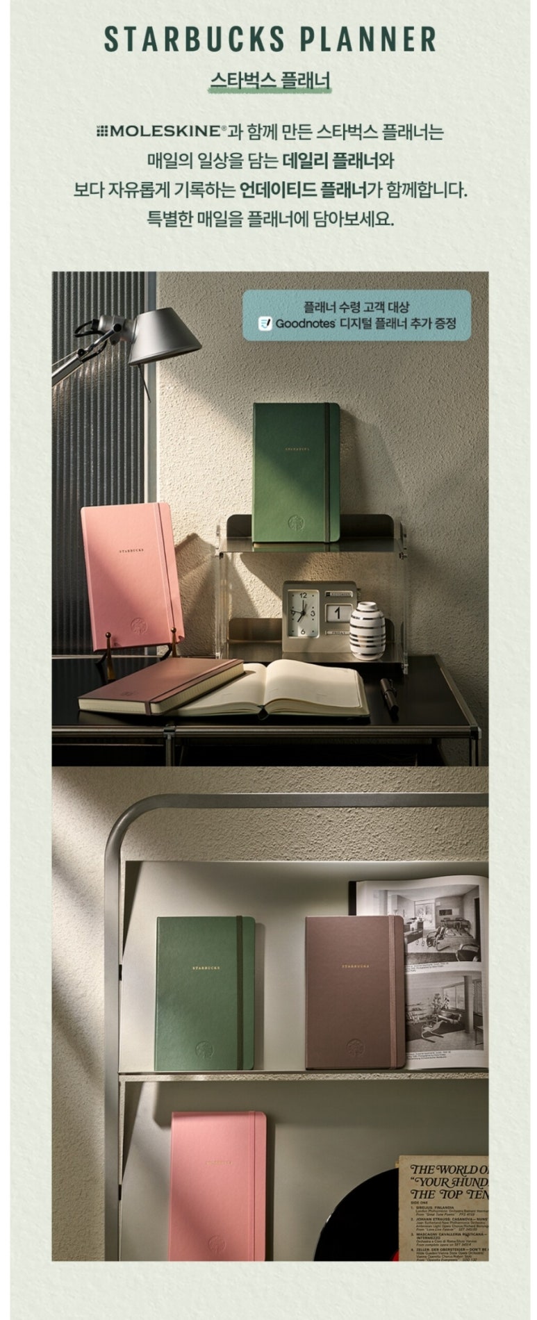 - 몰스킨과 함께 제작한 플래너는 두 종류입니다: 데일리 플래너와 언데이티드 플래너.