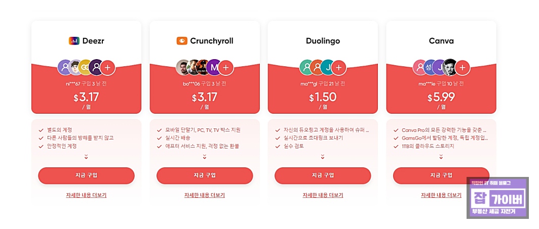 겜스고는 OTT 및 교육 앱을 공유할 수 있는 사이트로, 듀오링고 요금을 훨씬 낮출 수 있습니다.