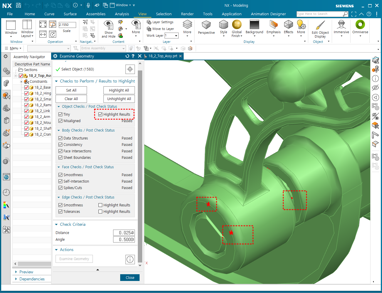 지멘스 NX Examine Geometry - Heal 기능 데이터 오류 무결성 검사