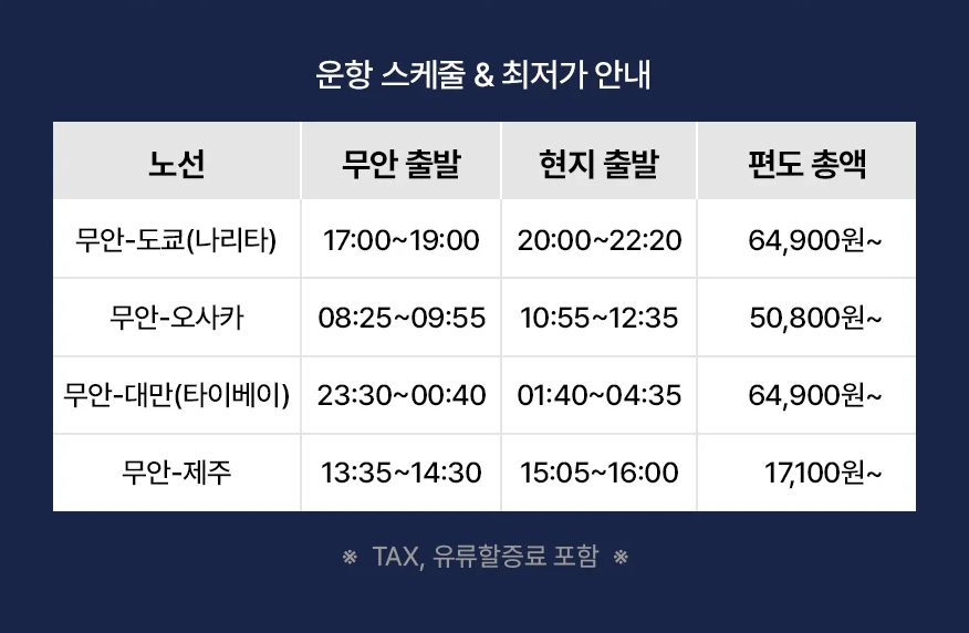 진에어 프로모션 도쿄, 오사카, 타이베이 전남 무안 시작 일본과 대만 여행