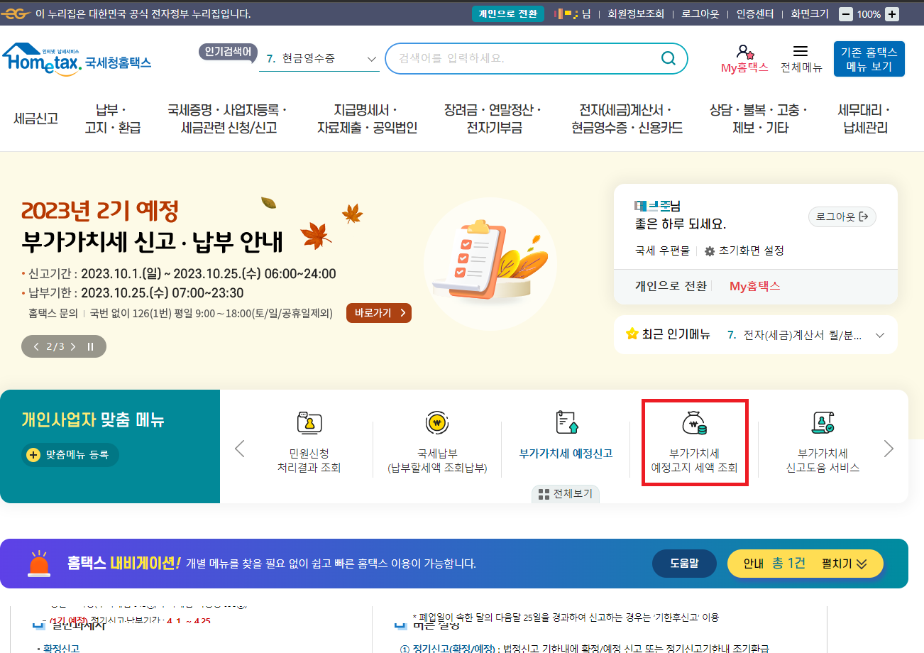- 예정신고를 통해 직접 신고를 한 경우, 국세청에서 발송된 예정고지서는 자동으로 취소 처리됩니다.