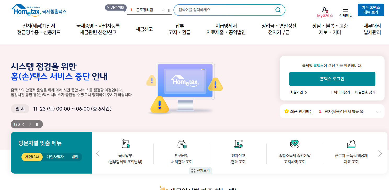 '홈택스' 통합조회 서비스, 미리채움 서비스, 자기검증 서비스, 신고도움 서비스 등을 이용하면 더욱 정확하고 편리하게 신고할 수 있습니다.