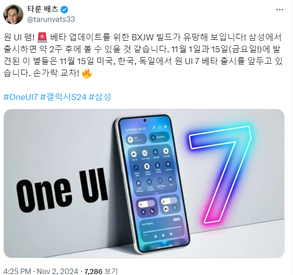 - 2024년 1월 22일 공개 예정이며, One UI 7.0 정식 버전과 함께 출시될 가능성이 큼.
